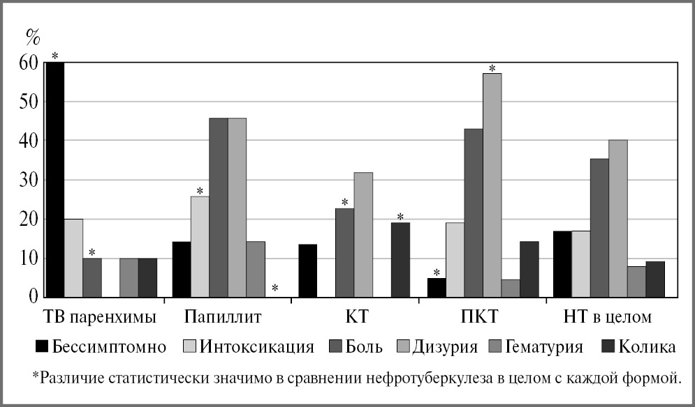 Знание структуры клинических форм туберкулеза почек необходимо, поскольку клинические картины отличаются, что демонстрирует рис. 6.