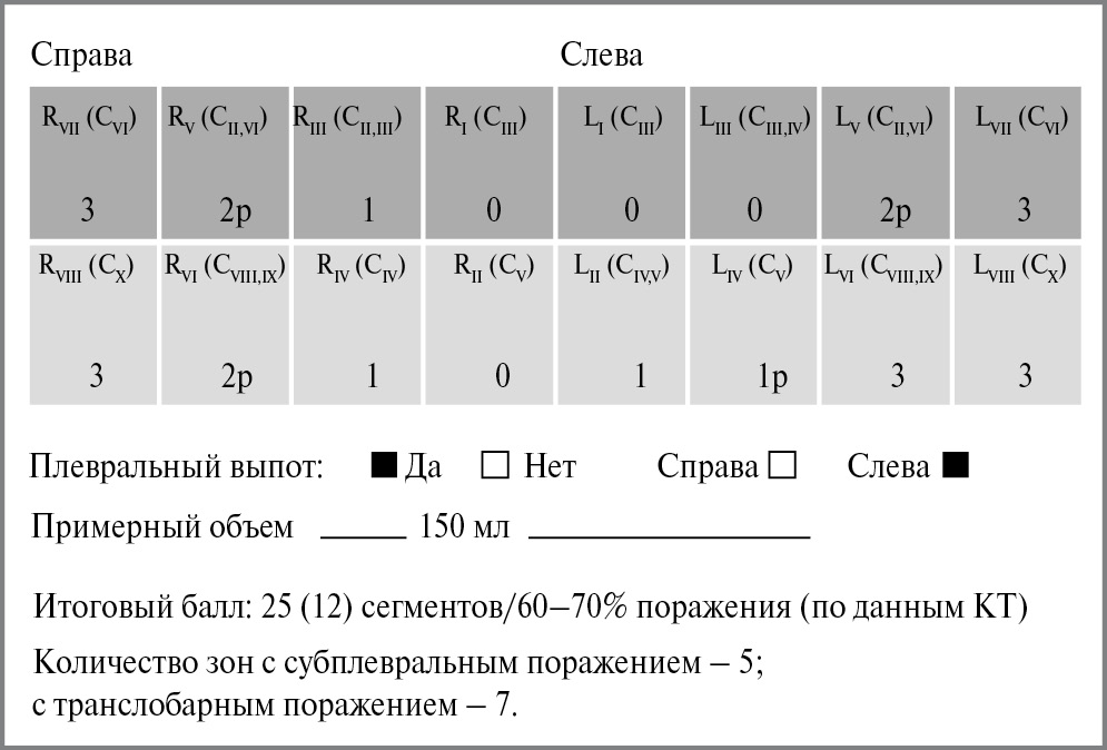 2. Рис. 1. Пример протокола УЗИ легких с оценкой тяжести поражения.