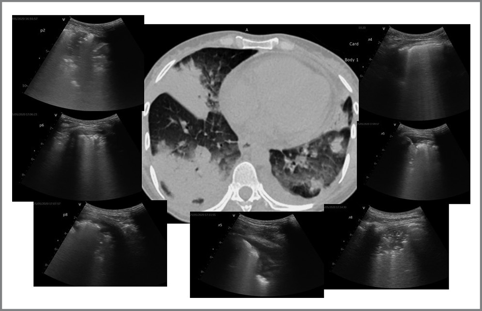 12. Soccorsa S, Boccatonda A, Montanari M, et al. Thoracic ultrasound and SARS-COVID-19: a pictorial essay. J Ultrasound. 2020;23:217-21. doi: 10.1007/s40477-020-00458-7