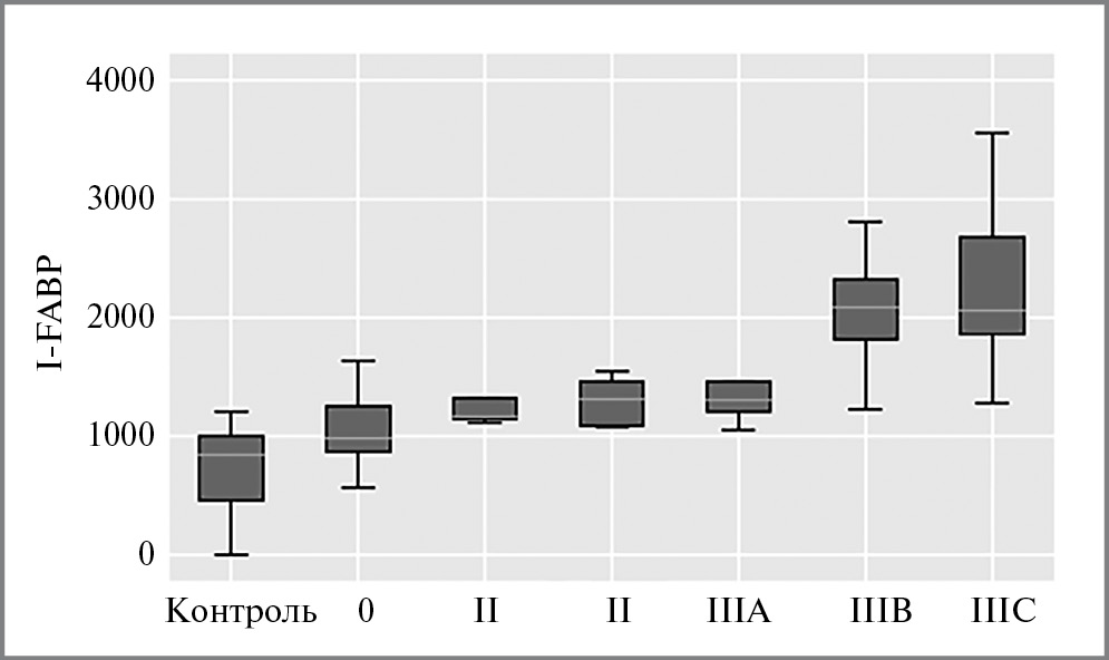4. Fig. 3. Level of I-FABP in blood serum in patients with varying degrees of atrophy Marsh III.