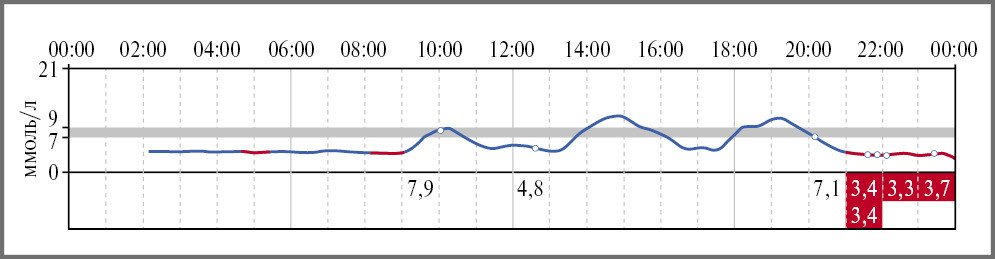 Рис. 4. Результат НМГ у пациента на фоне расширения пищевого рациона и базис-болюсной инсулинотерапии.