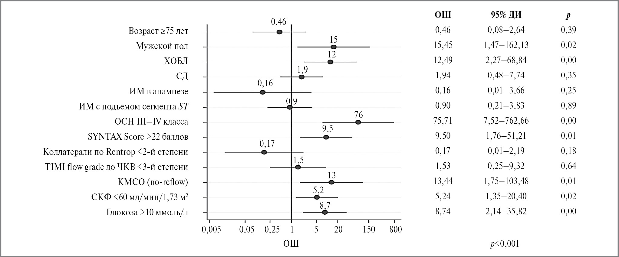 Рис. 5. Результаты логистического регрессионного анализа с использованием «весовых» коэффициентов в отношении исхода «КМСО».
