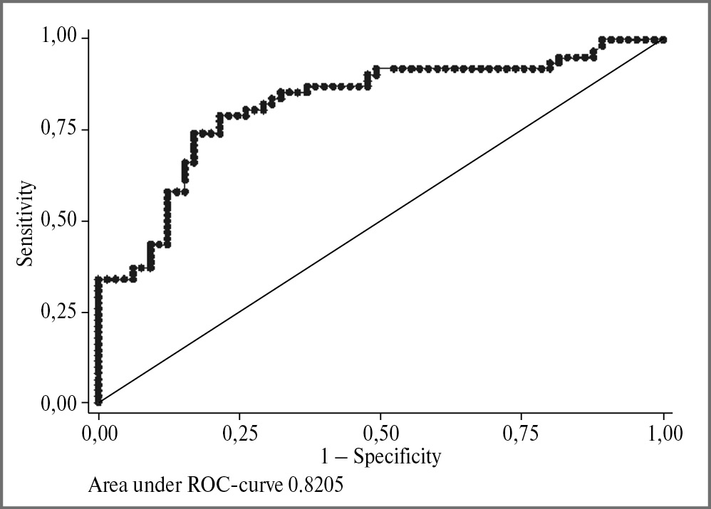 В то же время в рамках анализа результатов исследования нами выявлены достоверные различия между группами с высокой и частичной/низкой приверженностью терапии по целому ряду показателей опросников SF-36 и NEO-FFI. На основании полученных результатов построена модель вероятности принадлежности пациента к одной из двух групп с высокой или частичной/низкой приверженностью терапии, включающая оценку параметров шкалы SF-36 «психическое здоровье», «жизненная активность» и суммарный балл по данной шкале, а также параметру «экстраверсия» шкалы NEO-FFI. Проведенная проверка диагностической ценности модели показала ее высокую эффективность (точность правильного предсказания принадлежности пациента к одной из групп – 77,95%).