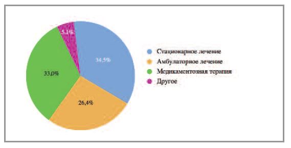 Рис. 3 Структура прямых затрат на лечение пациентов с ХЭЛГ в течение 1 года в РФ (%) [30]