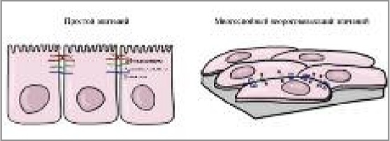 Рис. 2. Особенности межклеточных соединений в разных типах эпителия [3].