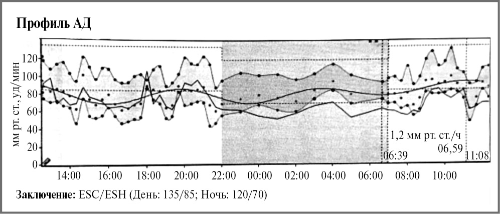 Рис. 3. Результаты суточного мониторирования АД.