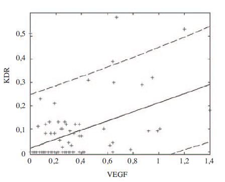 Полученные корреляции, вероятно, служат отражением согласованных изменений показателей ангиогенеза (мРНК как самогоVEGF, так и его рецепторов), что подтверждает возможность использования данной методики для оценки параметров ангиогенеза в наиболее доступных ядерных клетках.