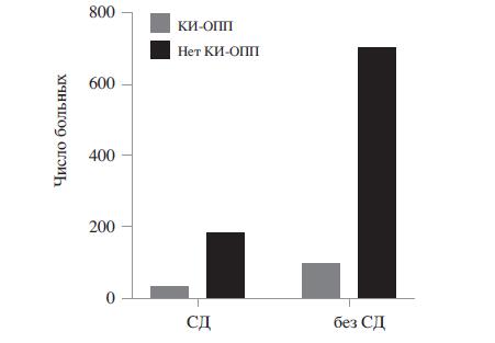 Рис. 1. КИ-ОПП у пациентов с СД и без него.