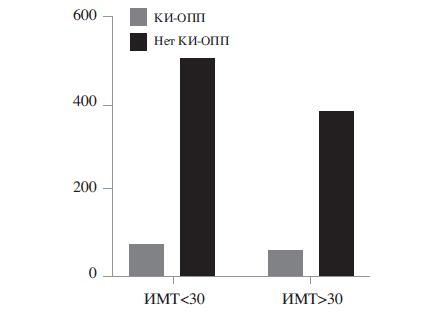 Рис. 2. КИ-ОПП у пациентов с ожирением и ИМТ<30 кг/м2.