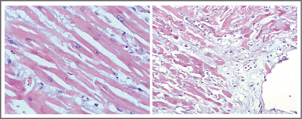 Рис. 5. Значительный отек стромы миокарда, лейкоцитарная инфильтрация.