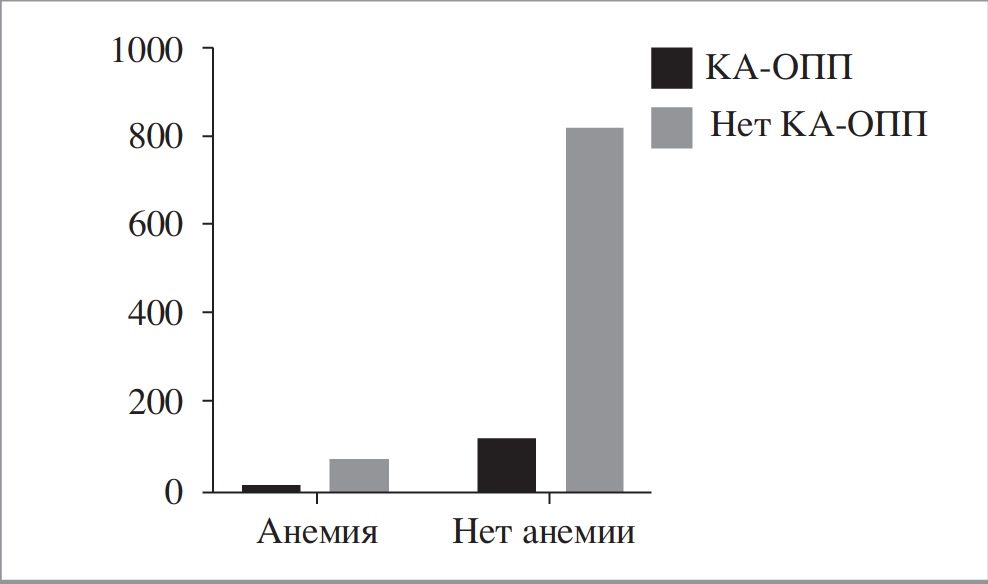 Рис. 1. КА-ОПП у пациентов с анемией и без.