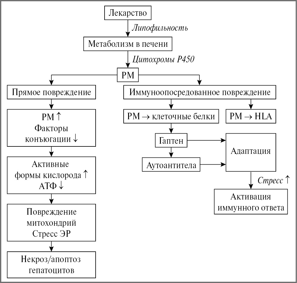 ИЛПП – повреждения, вызванные опосредованным воздействием лекарственных средств или их метаболитов на печень