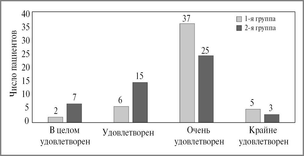 Рис. 2. Удовлетворенность пациентов приемом препарата по группам.