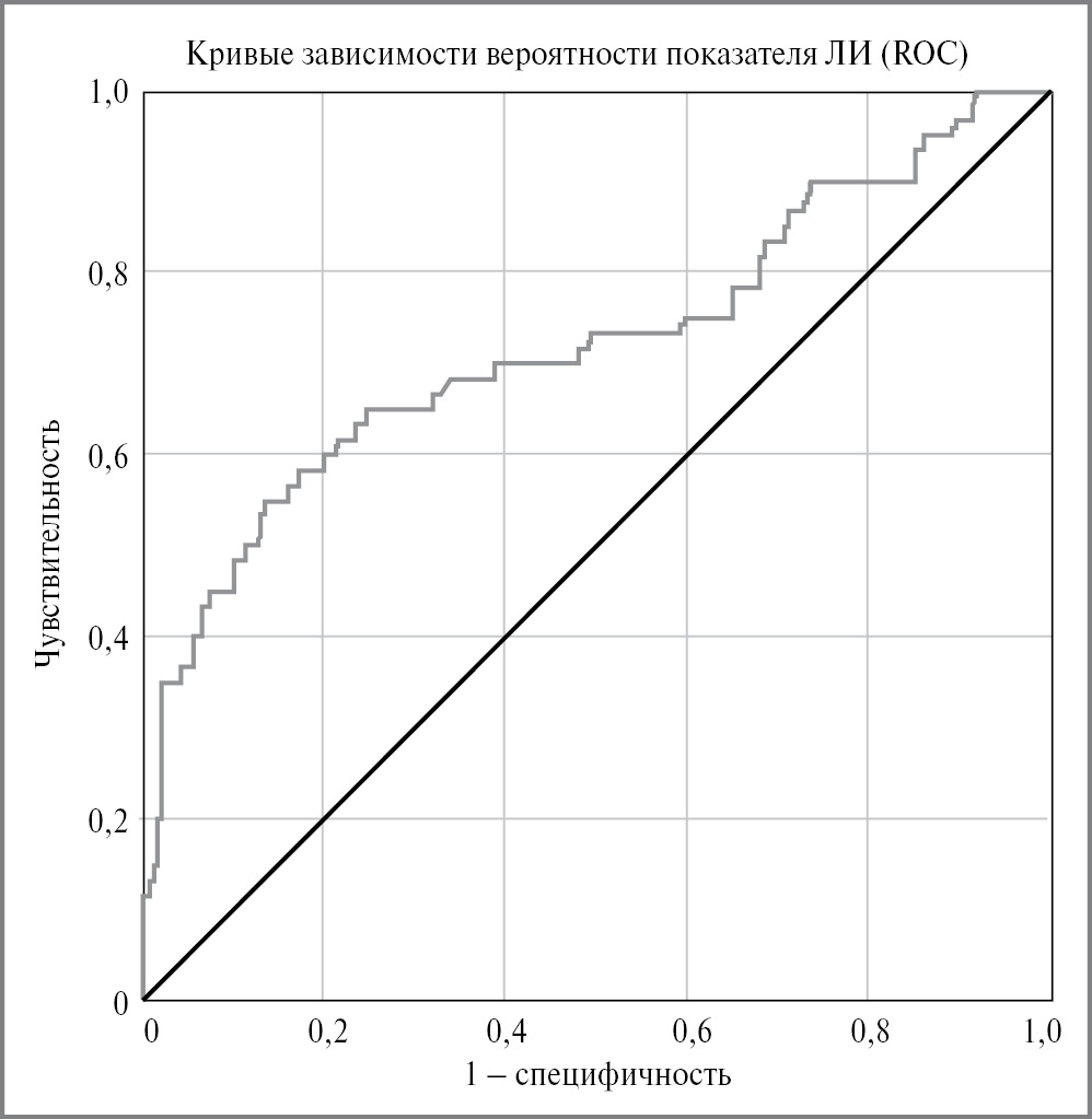 Рис. 3. ROC-кривые зависимости вероятности показателя ЛИ от значения логистической функции P.