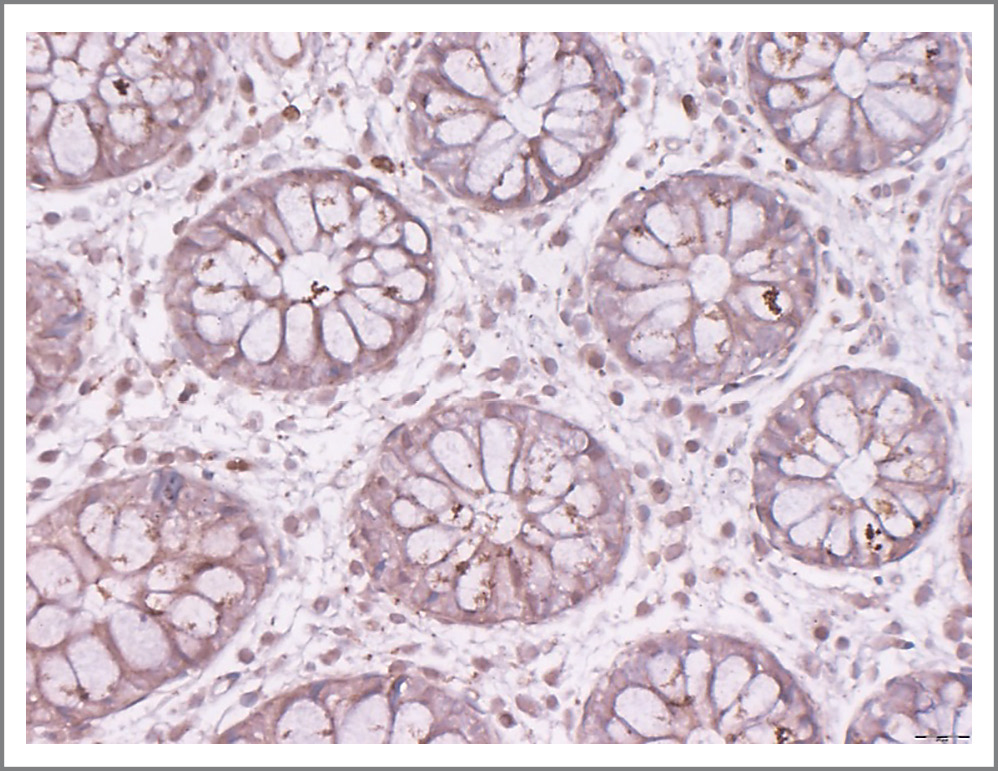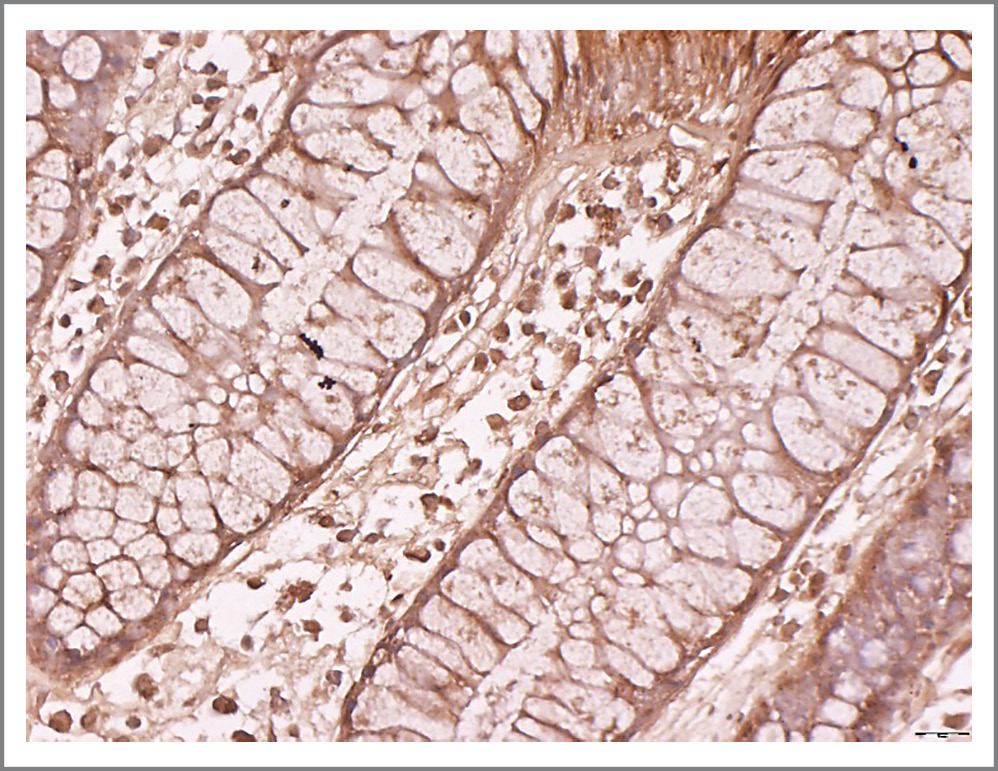 Fig. 3. The relative expression area of motilin is 65.57% in a patient with diverticular colon disease. ×40.