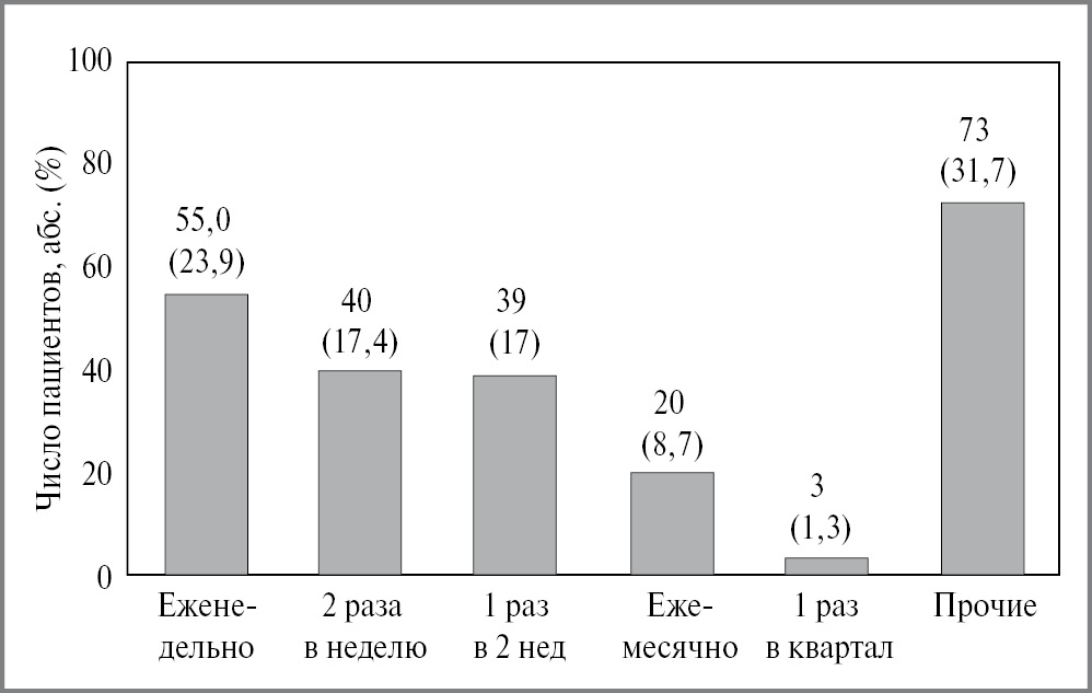 Указания на ночные симптомы имелись у 230 пациентов (рис. 1).
