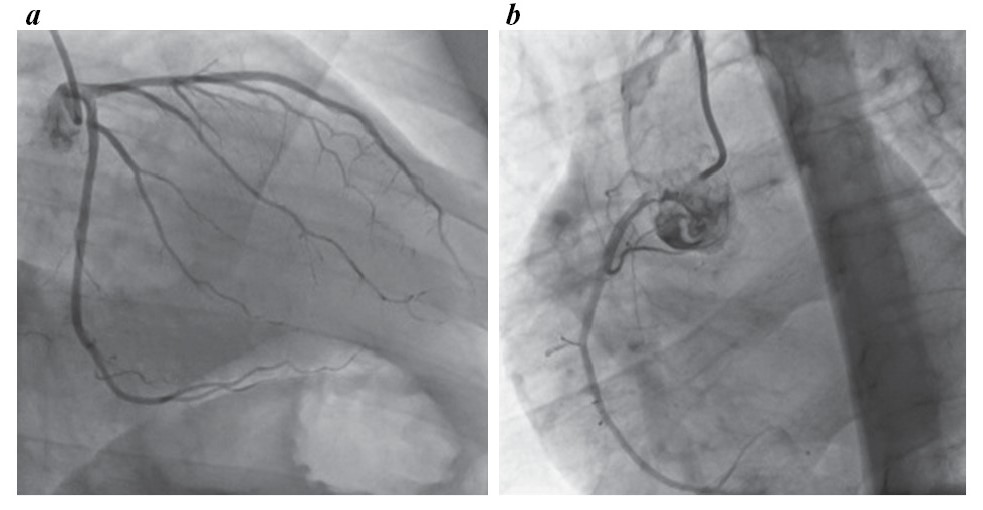 Рис. 6. Коронарография без гемодинамически значимых стенозов.