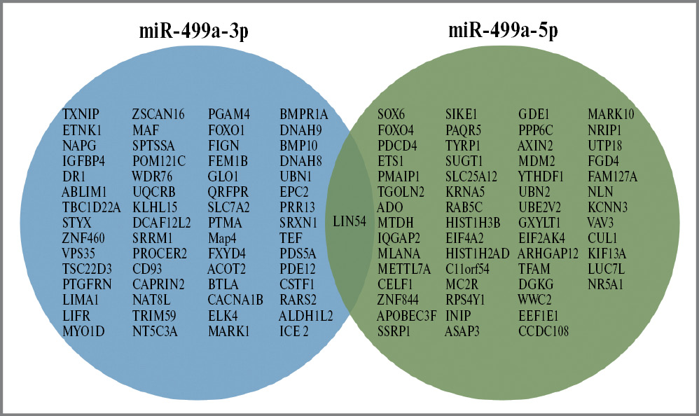 Fig. 2. Target mRNAs of miR-499a-3p and miR-499a-5p in humans.