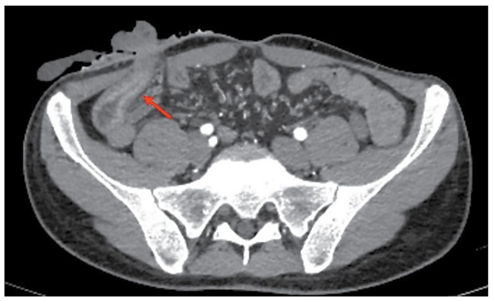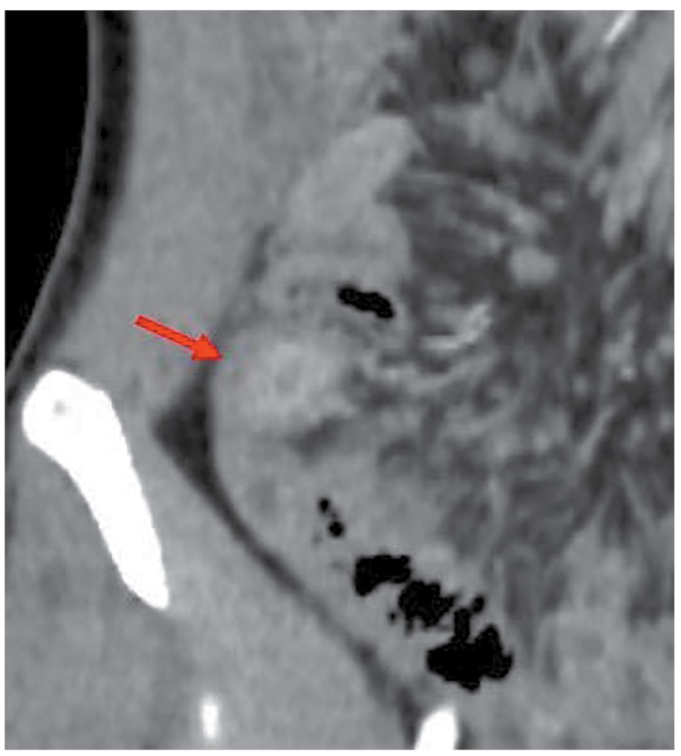 4. Fig. 3. CT-enterography. Inflammatory changes in the walls of the ileostomy.