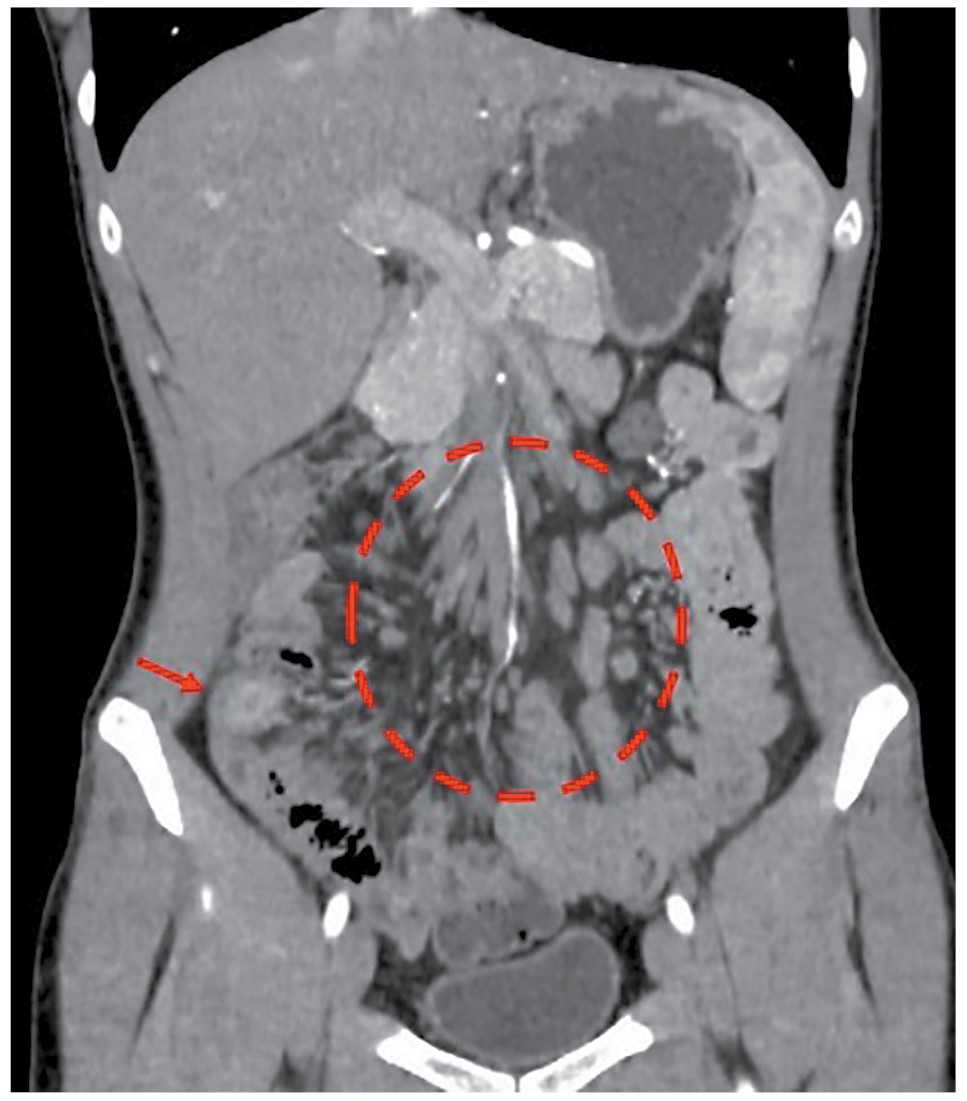 5. Fig. 4. CT-enterography. Inflammatory changes in the colon.