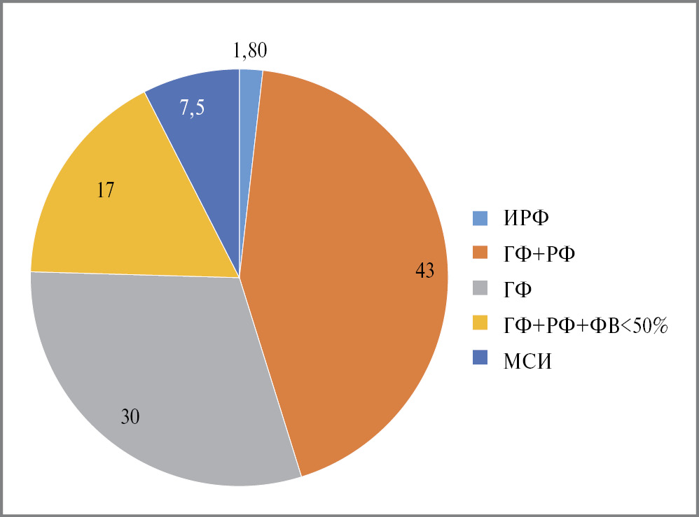 Рис. 3. Распространенность фенотипов среди пациентов с АКМП, %.