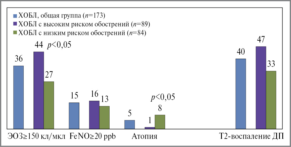 Цель исследования – оценить частоту выявления маркеров Т2-воспаления дыхательных путей у больных ХОБЛ.