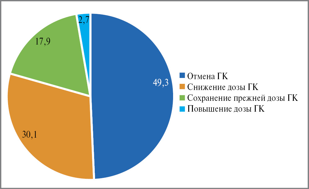 Цель исследования – оценить возможности снижения дозы или полной отмены ГК на фоне лечения ЛВЛ в реальной клинической практике.