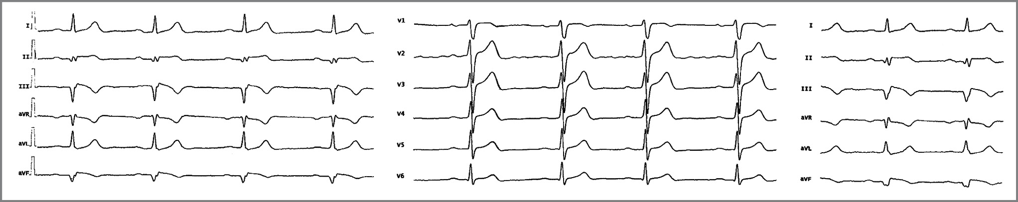 Анамнез заболевания: cчитает себя больным несколько лет, когда стал отмечать появление незначительной одышки, дискомфорт за грудиной, не имеющий связи с физической нагрузкой, эпизоды подъема артериального давления. К врачам длительно не обращался, не лечился. В марте 2023 г. после эмоционального и физического перенапряжения (много бегал по этажам по работе) на фоне гипертонического криза отметил появление выраженной боли за грудиной, иррадиирующей в левую лопаточную область, одышку, слабость. На электрокардиограмме (ЭКГ), сделанной скорой помощью, которую вызвал пациент, выявлены признаки острого инфаркта миокарда (ОИМ) задней стенки с подъемом сегмента ST и патологическим зубцом Q (рис. 1).
