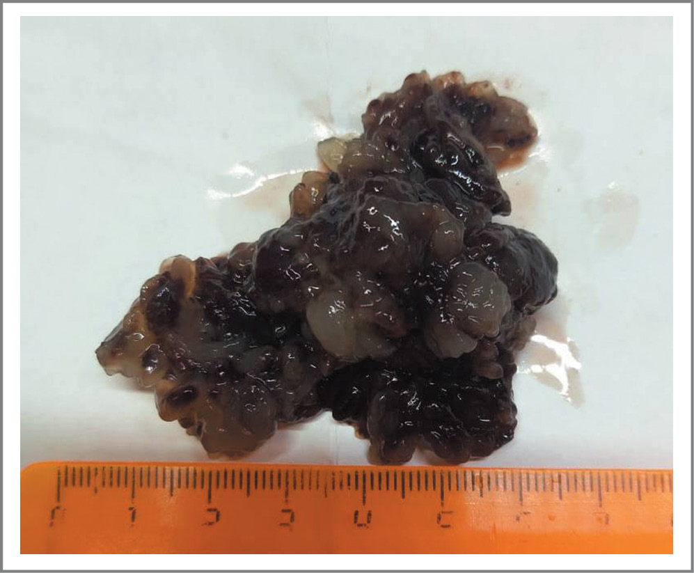 Пациенту выполнено оперативное вмешательство: удаление объемного образования из полости ЛП в условиях искусственного кровообращения. На рис. 5 представлен макропрепарат миксомы ЛП.