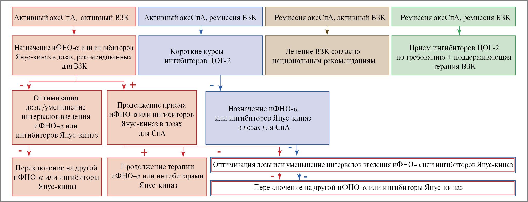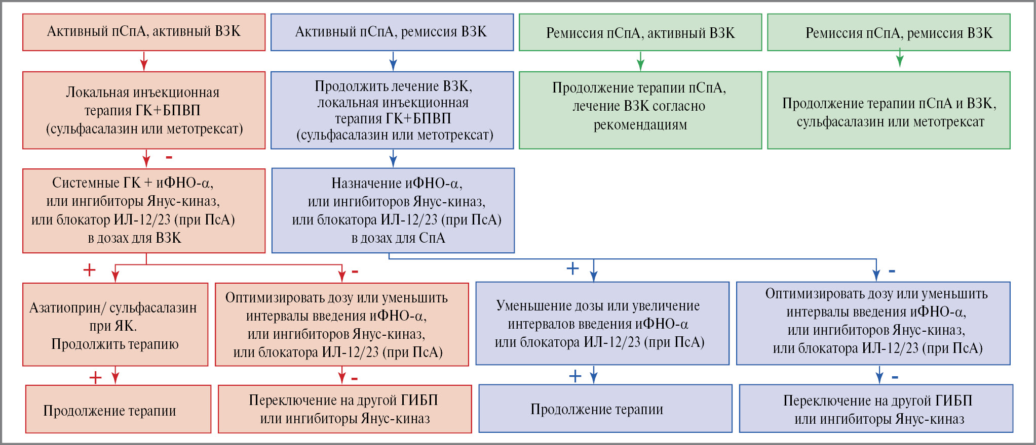 СпА, ассоциированный с ВЗК, – хроническое воспалительное заболевание из группы СпА, характеризующееся поражением суставов, позвоночника и энтезисов, ассоциированное с БК или ЯК [6, 8].