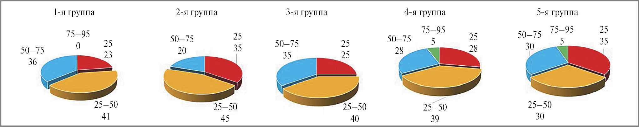Рис. 1. Степень поражения легких по данным КТ в острый период COVID-19 (%).
