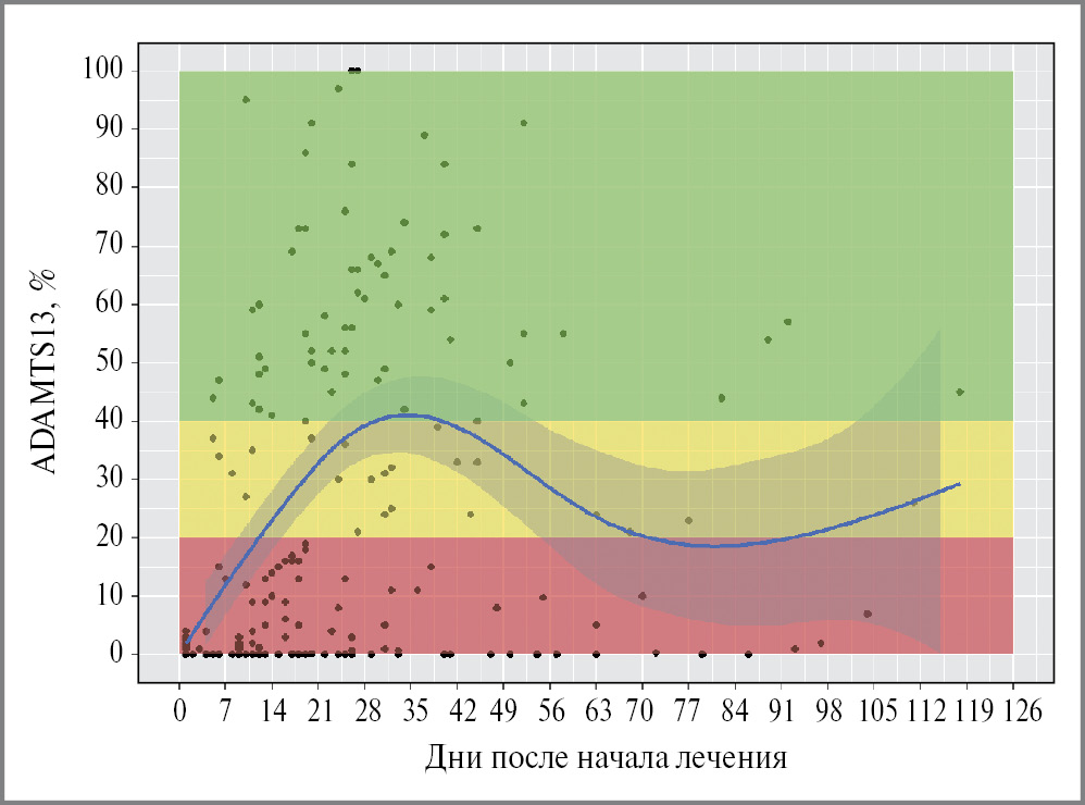 Рис. 4. Изменения активности ADAMTS13 при лечении иТТП.