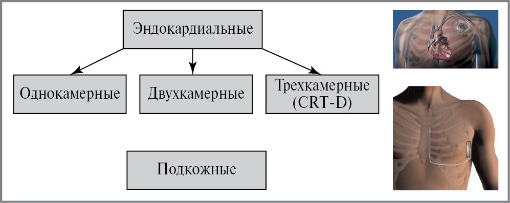 В настоящее время существуют различные типы имплантируемых КВД: трансвенозные, подкожные системы (ПК-КВД) и носимые, что позволяет специалистам, занимающимся СН, персонализировать подход к профилактике ВСС для каждого пациента (рис. 3).