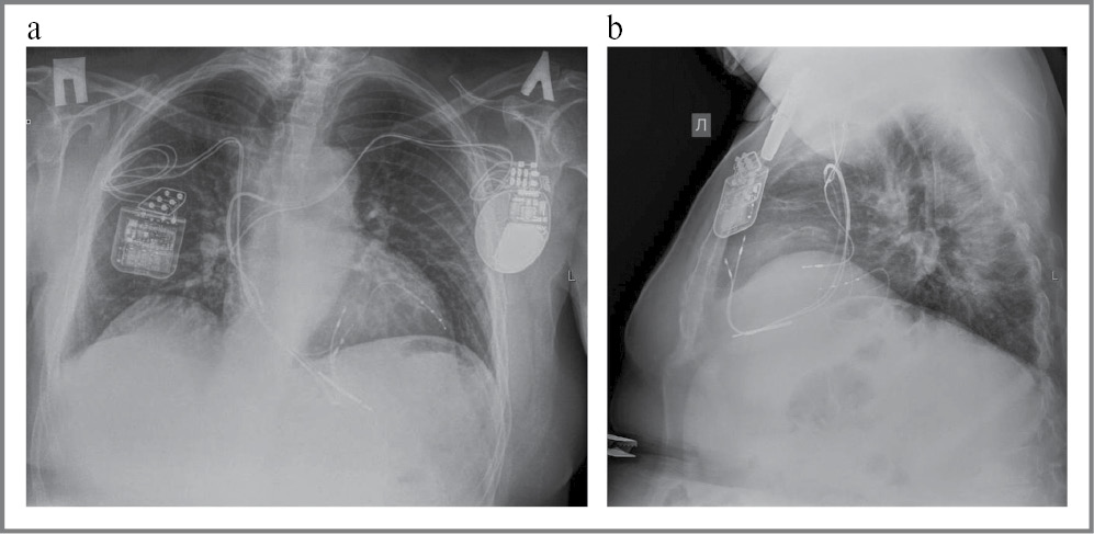 Fig. 4. Chest X-ray of a patient with an CCM-device and CRT-D (Archive Chazov National Medical Research Center of Cardiology).