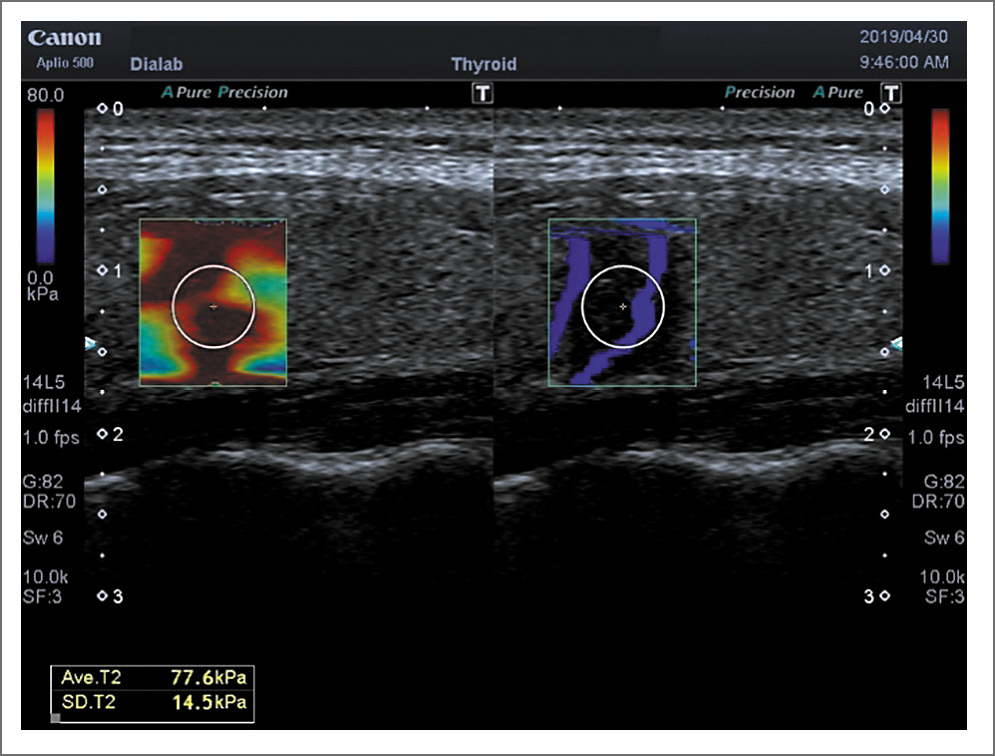 - Magri F, Chytiris S, Capelli V, et al. Shear wave elastography in the diagnosis of thyroid nodules: feasibility in the case of coexistent chronic autoimmune Hashimoto’s thyroiditis. Clin Endocrinol (Oxf). 2012;76(1):137-41. doi: 10.1111/j.1365-2265.2011.04170.x
