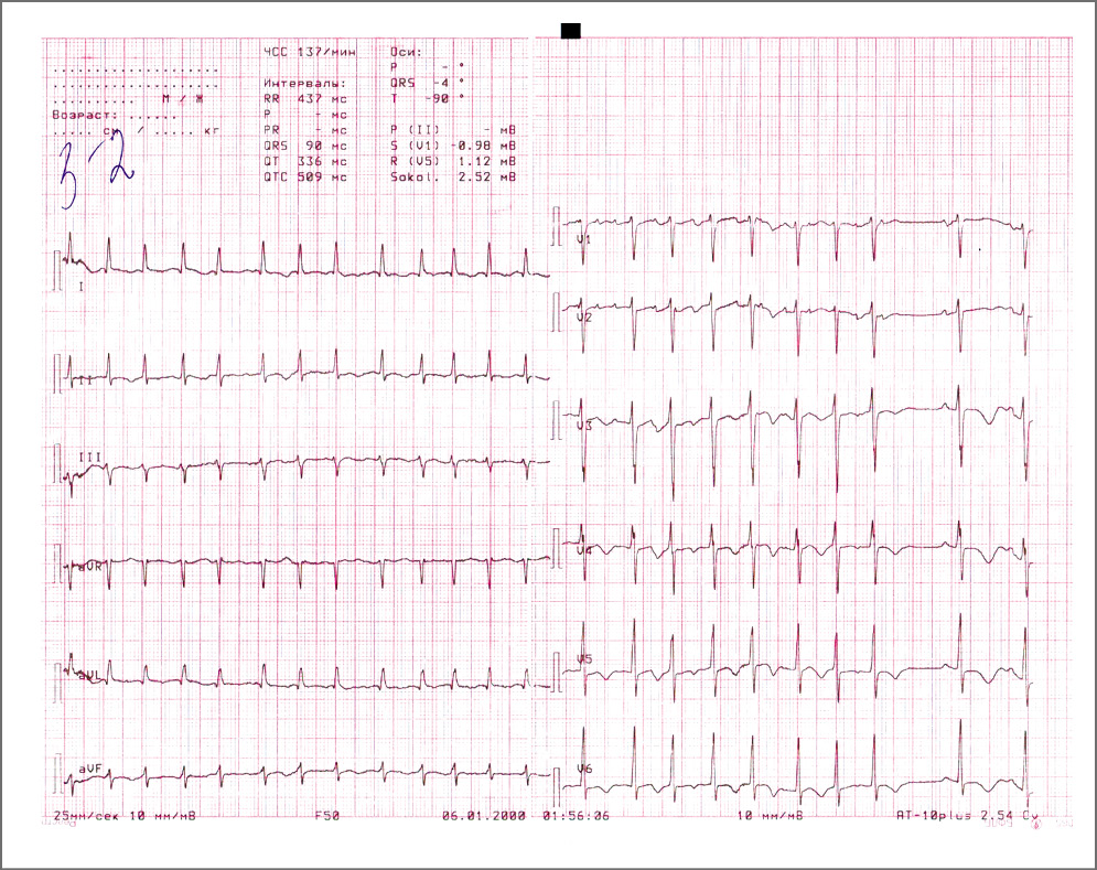 Рис. 1. ЭКГ при поступлении в стационар: синусовый ритм