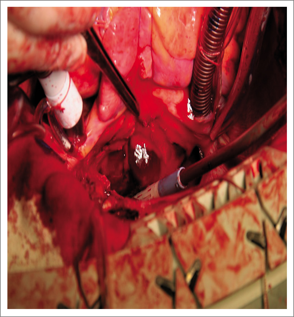 Рис. 4. Операция: удаление образования ЛП в условиях нормотермического искусственного кровообращения и кровяной тепловой кардиоплегии по Калафиори