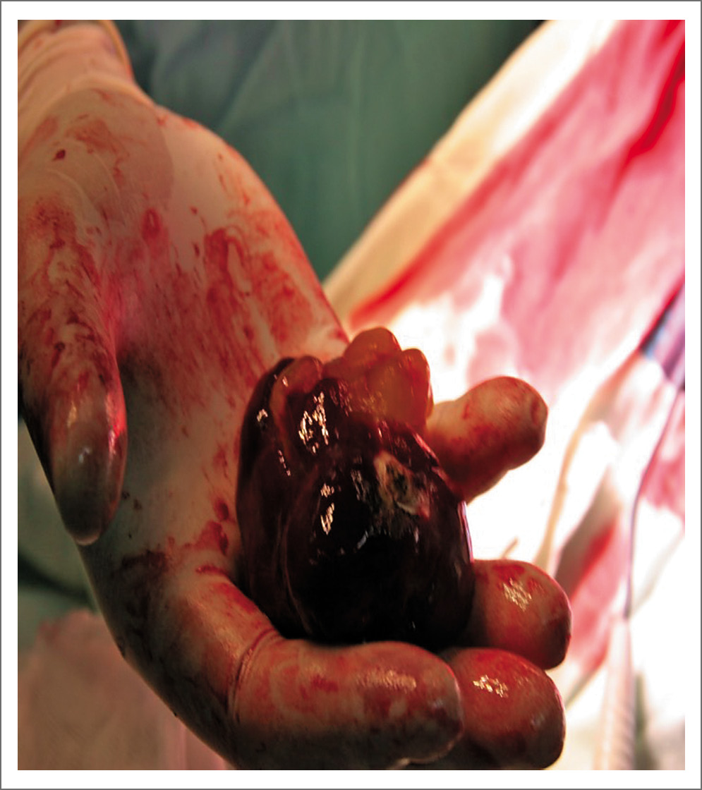 Рис. 5. Удаленное образование имело большие размеры – более 6 см (6,5х4х4 см), занимало практически всю полость ЛП