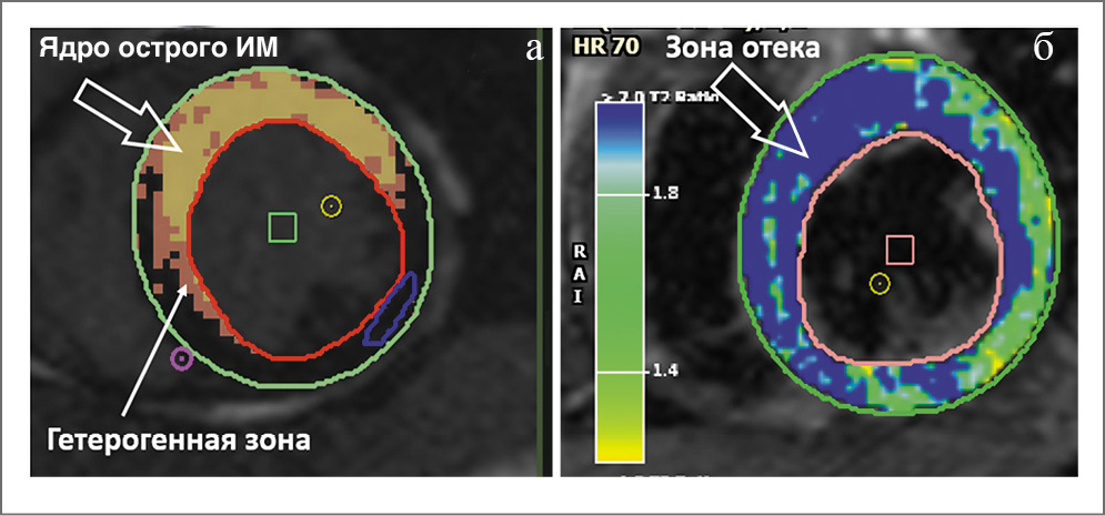 Т2-ВИ | Выявление отека (повышение ИС более чем в 2 раза в сравнении с неповрежденным миокардом) |