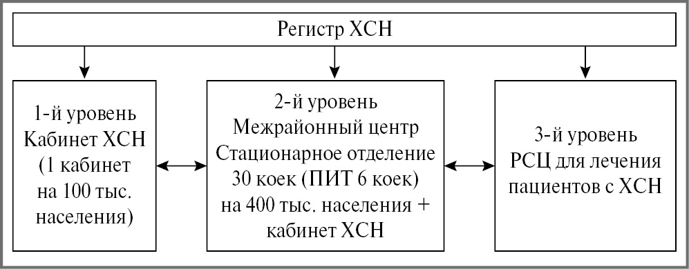 Рис. 1. Единая трехуровневая система оказания помощи пациентам с ХСН в Тюменской области.