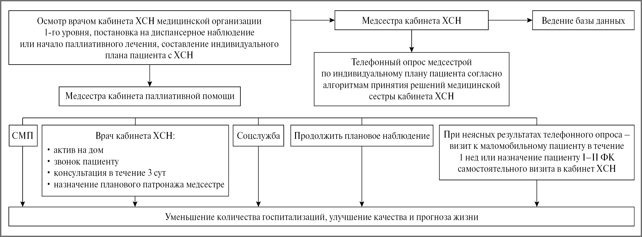 Рис. 2. Организация работы медицинской сестры амбулаторного кабинета по лечению больных с ХСН.