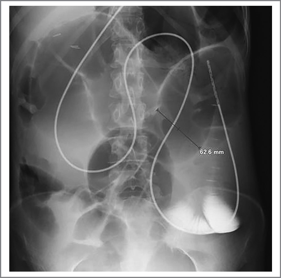 Fig. 4. X-ray of patient A.: abdominal cavity with nasointestinal probe.