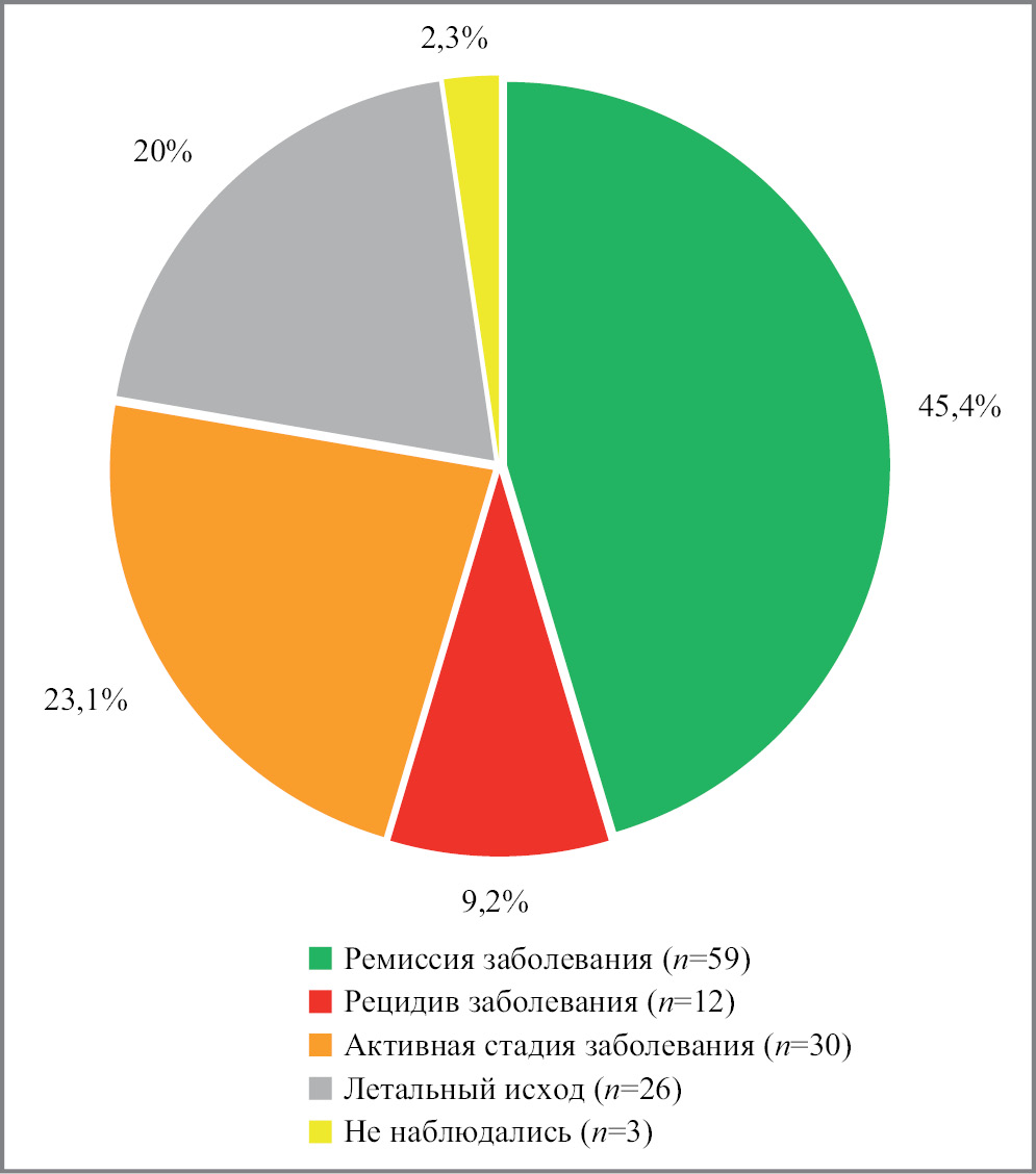 Информация о статусе ремиссии или персистенции заболевания на момент последнего наблюдения представлена на рис. 4.