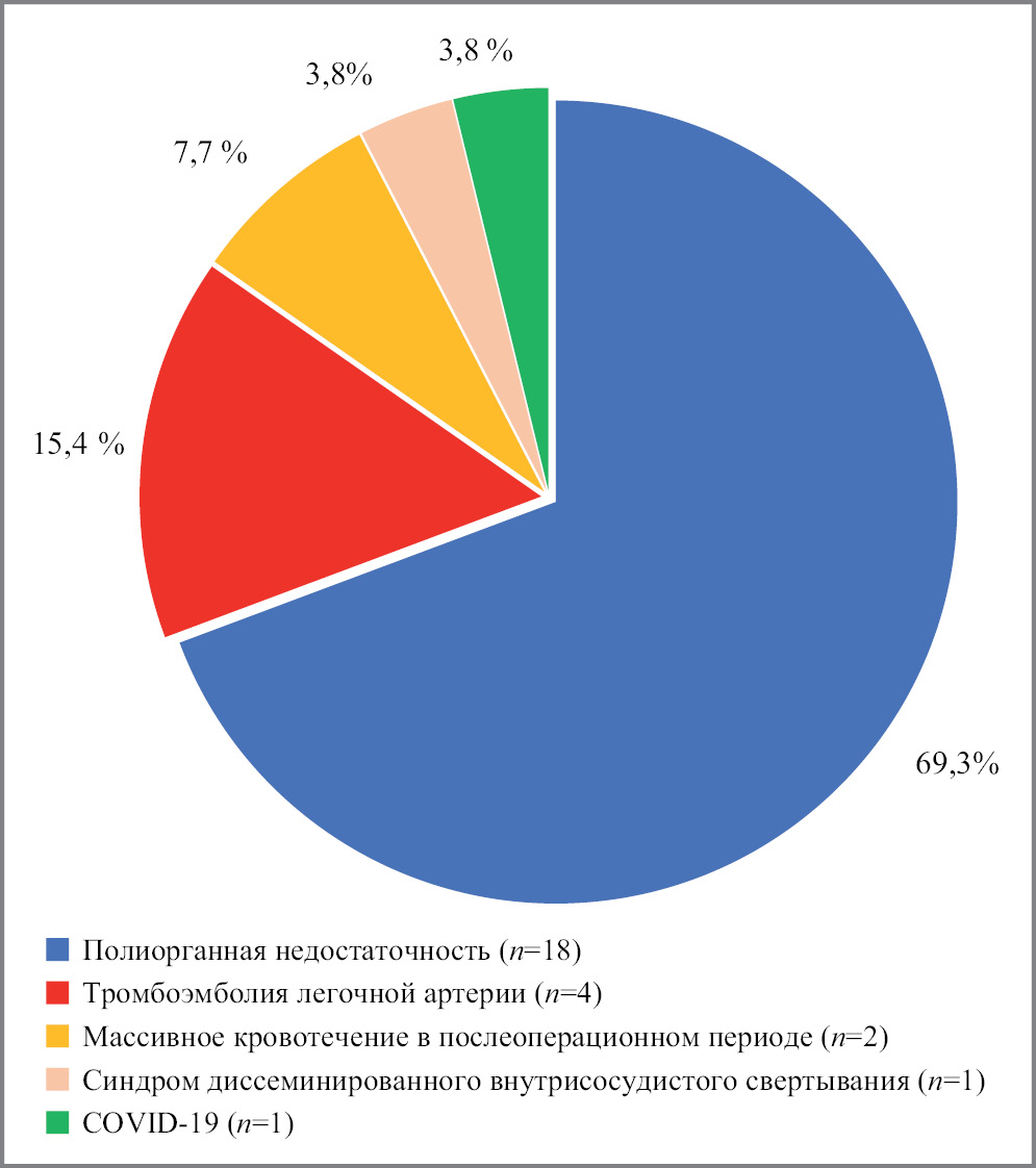 Рис. 5. Структура причин летального исхода пациентов с АКТГ-ЭС (n=26).