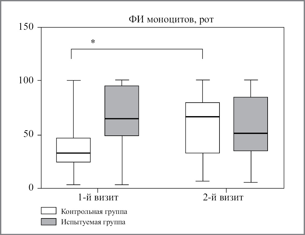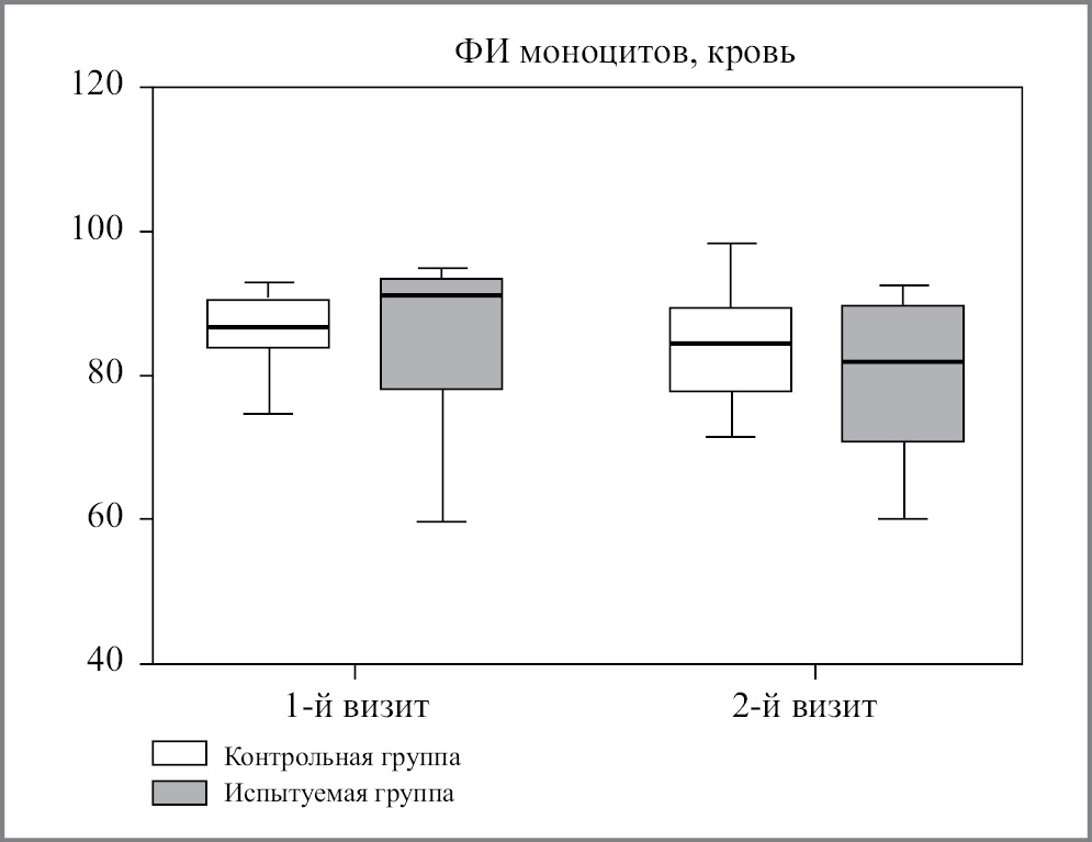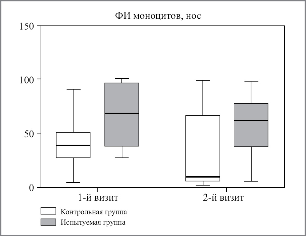 Рис. 2. Сравнительная характеристика фагоцитарной активности моноцитов в крови.