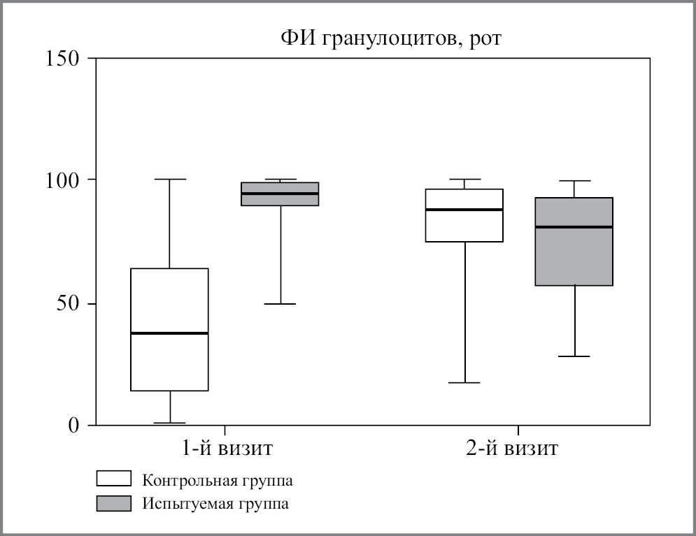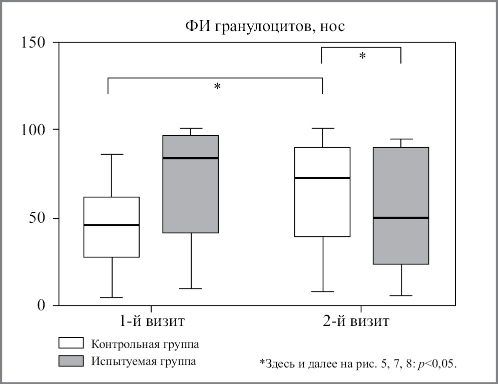 Рис. 4. Сравнительная характеристика фагоцитарной активности гранулоцитов в назальном соскобе.