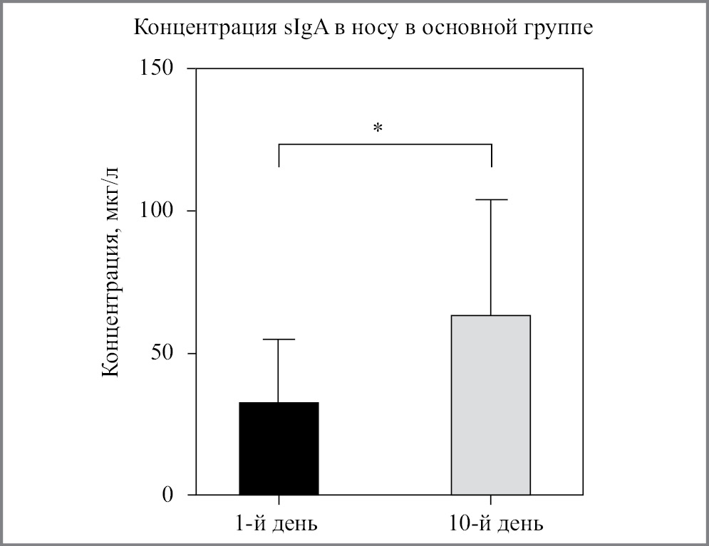 Рис. 7. Сравнительная характеристика уровня sIgA в назальном соскобе в испытуемой группе.