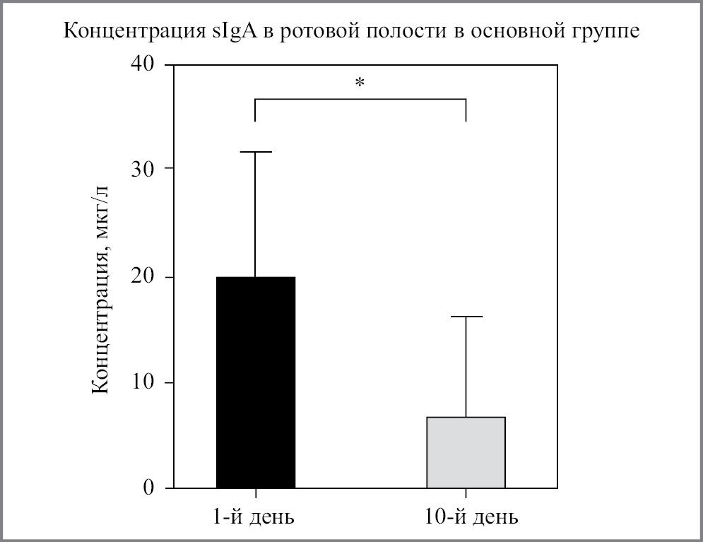 Рис. 8. Сравнительная характеристика sIgA в фарингеальном соскобе в испытуемой группе.
