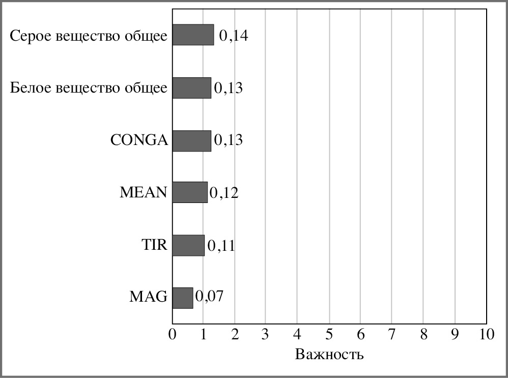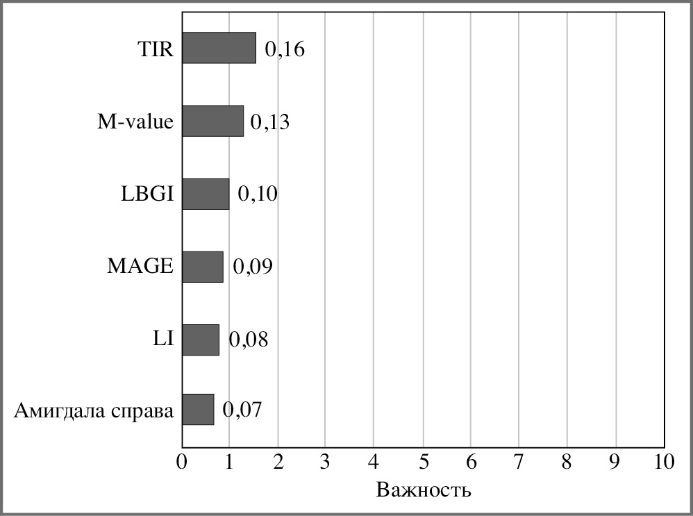 Рис. 2. Важность признаков для модели А СД 1, вариабельность гликемии vs МРТ.