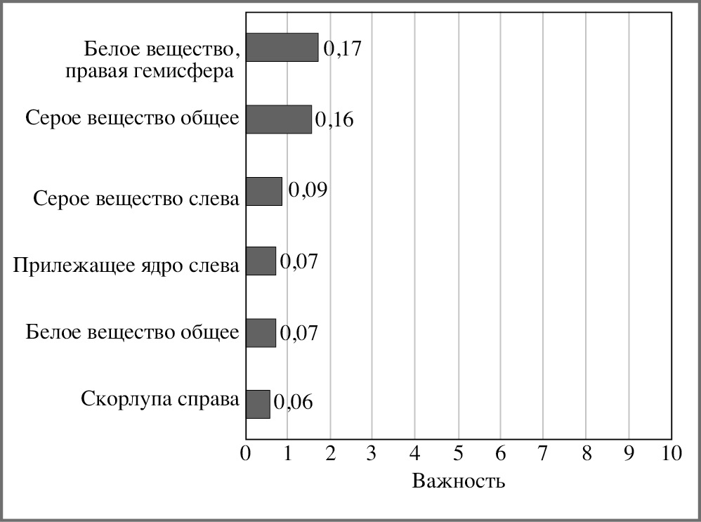 Рис. 4. Важность признаков для модели Б СД 1, МРТ.